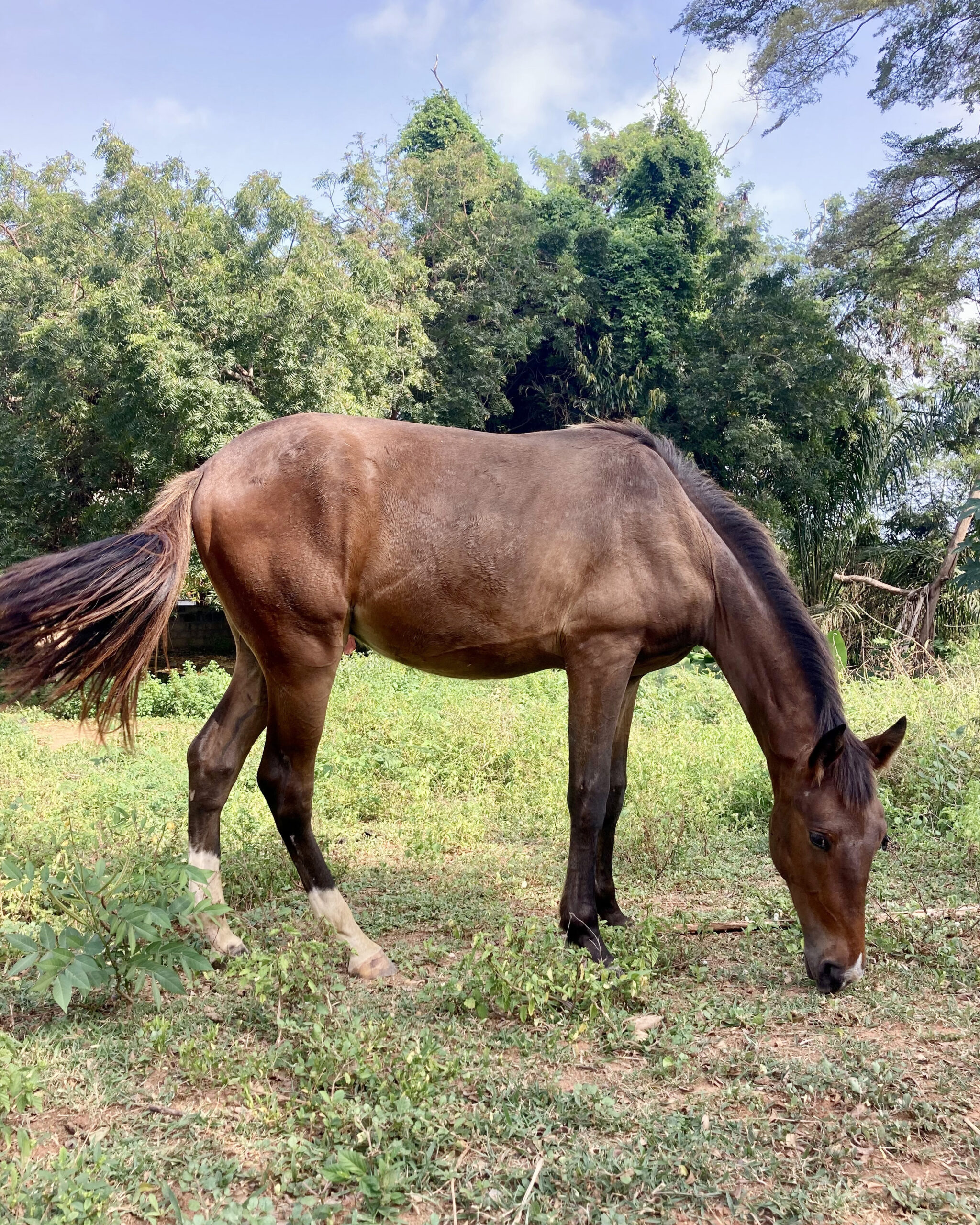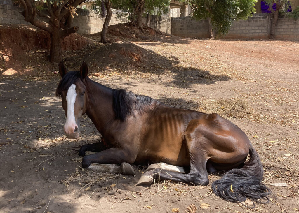 When Mr. Key collapsed at the racetrack in Accra in December 2021, few believed he would recover. Ulla had been at the track that day and saw him even before the race—already in a weakened condition. Once on the track, he was visibly overstimulated, likely from doping. After just one lap, he stumbled and collapsed, having torn ligaments in both front legs. As the jockeys and owners stood helpless, the atmosphere turned desperate. Finally, the owner turned to Ulla and asked if she could take care of him.